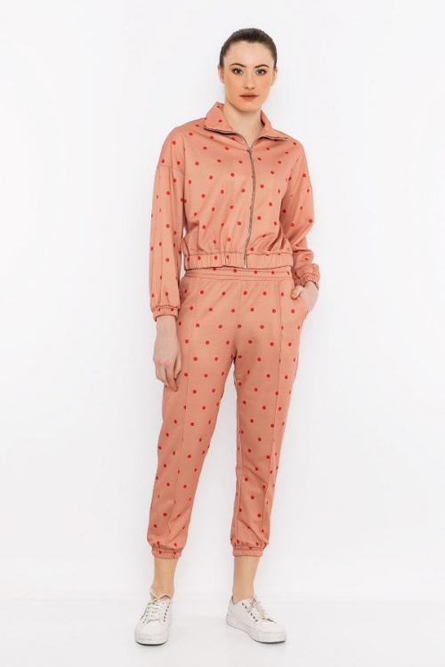 Woman Tan Patterned Sport Sport wear Tracksuit Suit