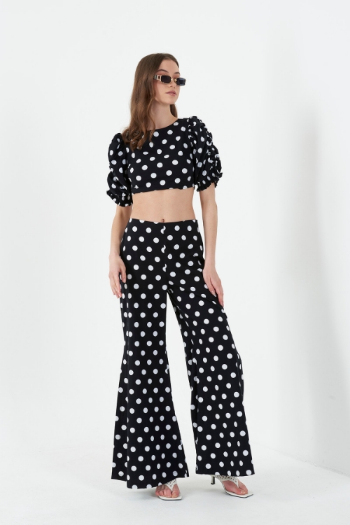 Woman Black Bird Gözlü Satin Material Loose Trousers