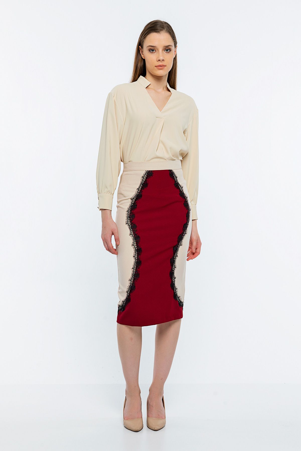 Woman Bordeux Maroon Knee Length Lace Classical Skirt