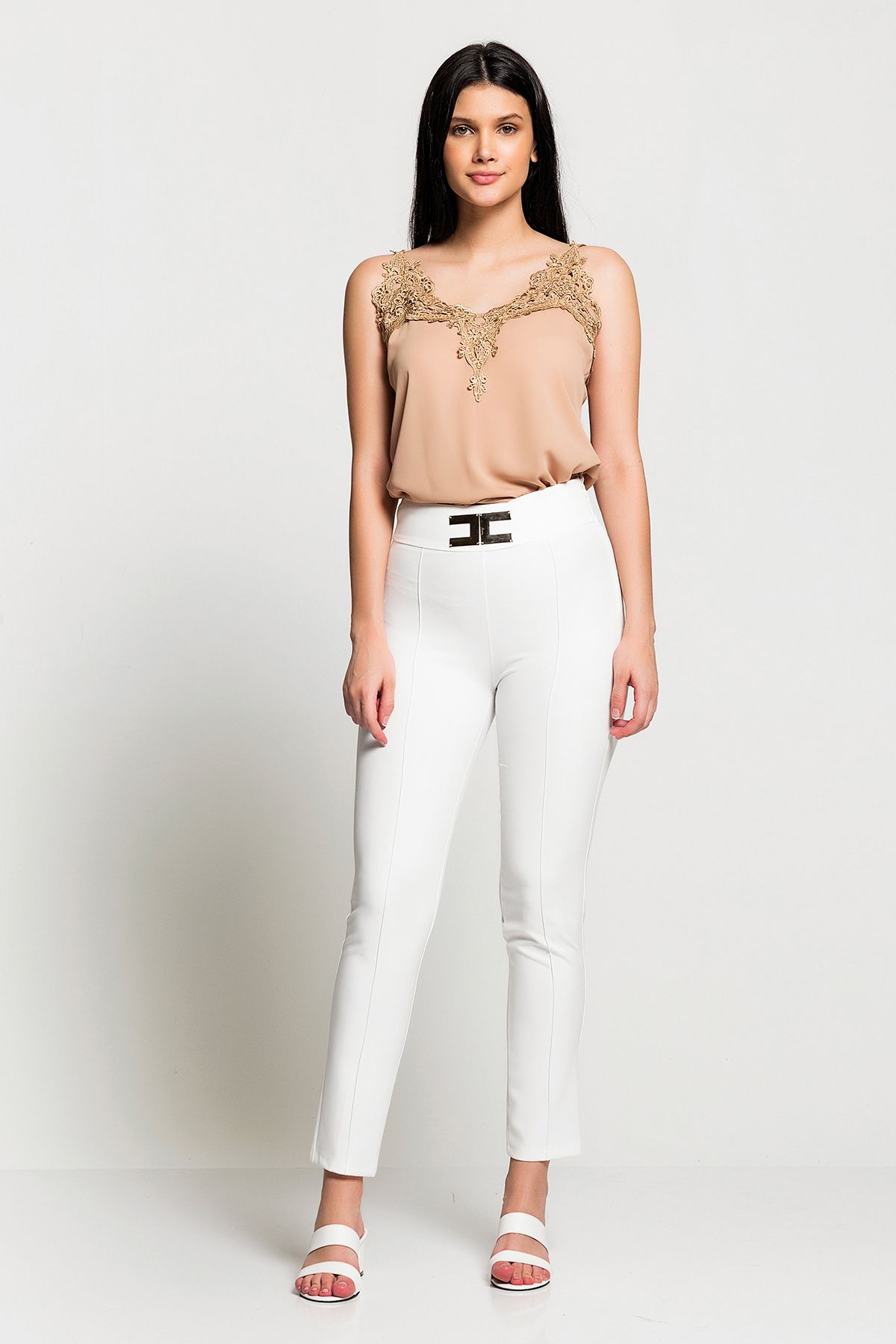 Picture of Woman Powder Comfortable Cut Belted Capri Trousers Discount -55%