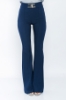 Kadın Lacivert Yüksek Bel Tokalı İspanyol Paça Pantolon