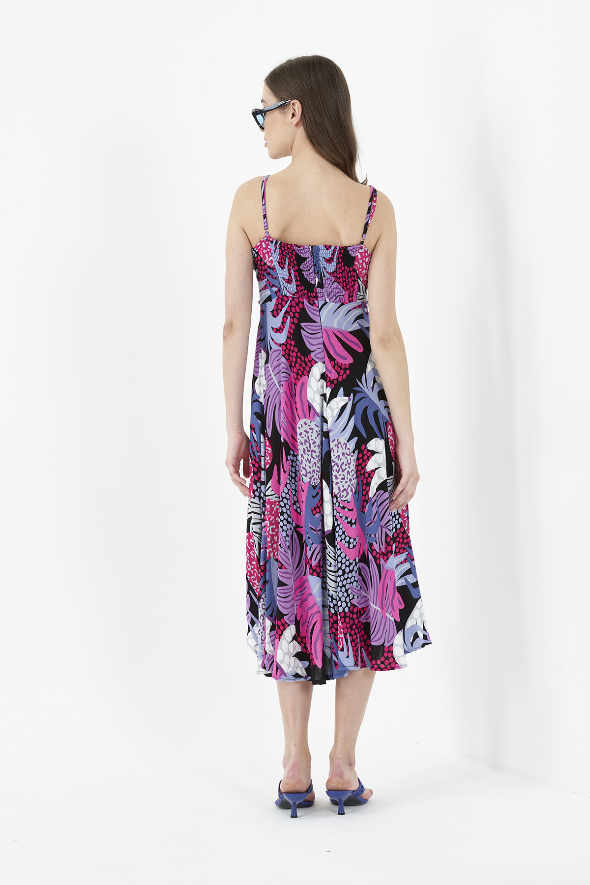 Kadın Mor Askılı Önden Yırtmaçlı Viskon Elbise