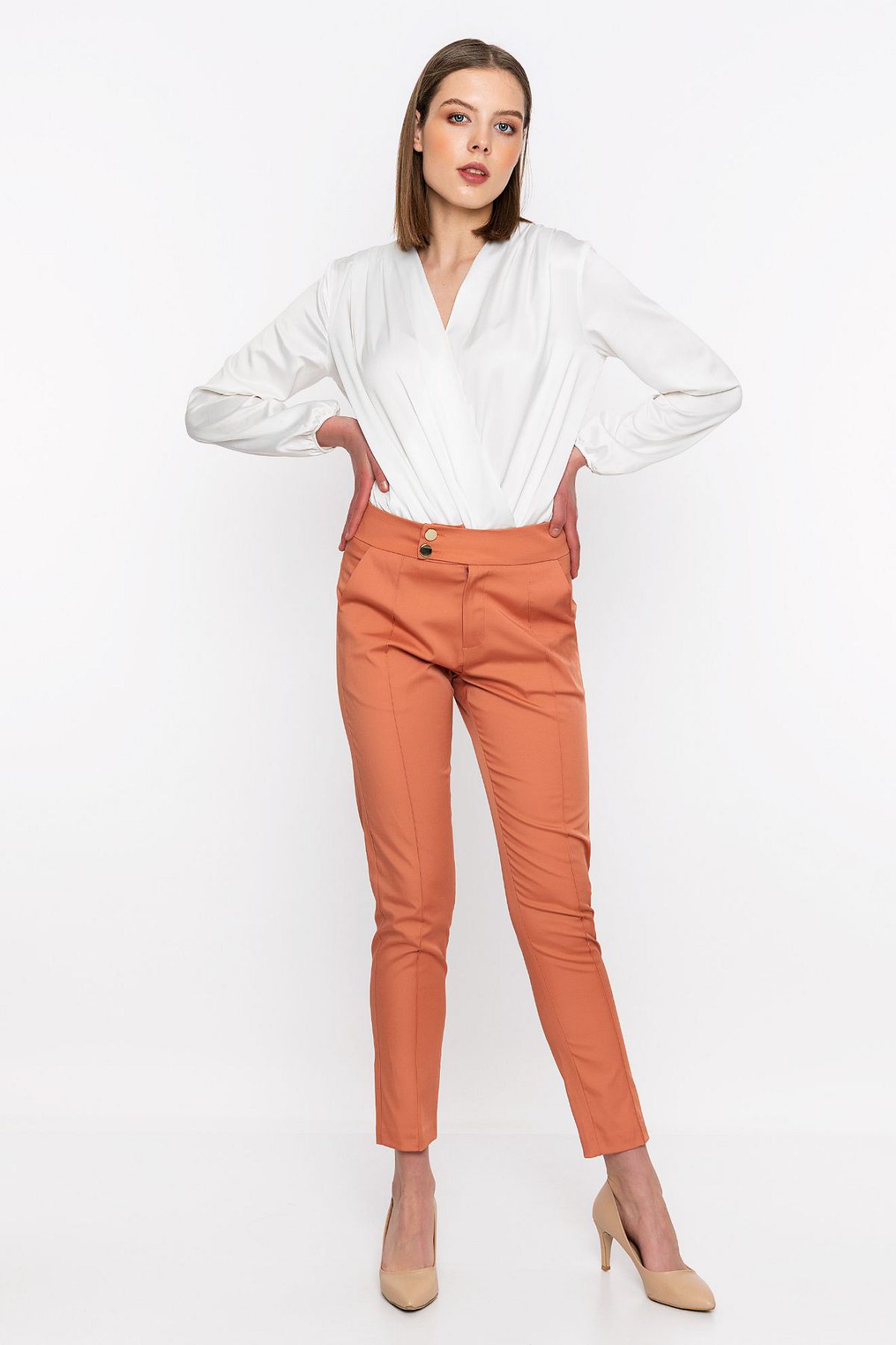 Kadın Tarçın Düğme Detaylı Klasik Kesim Pantolon