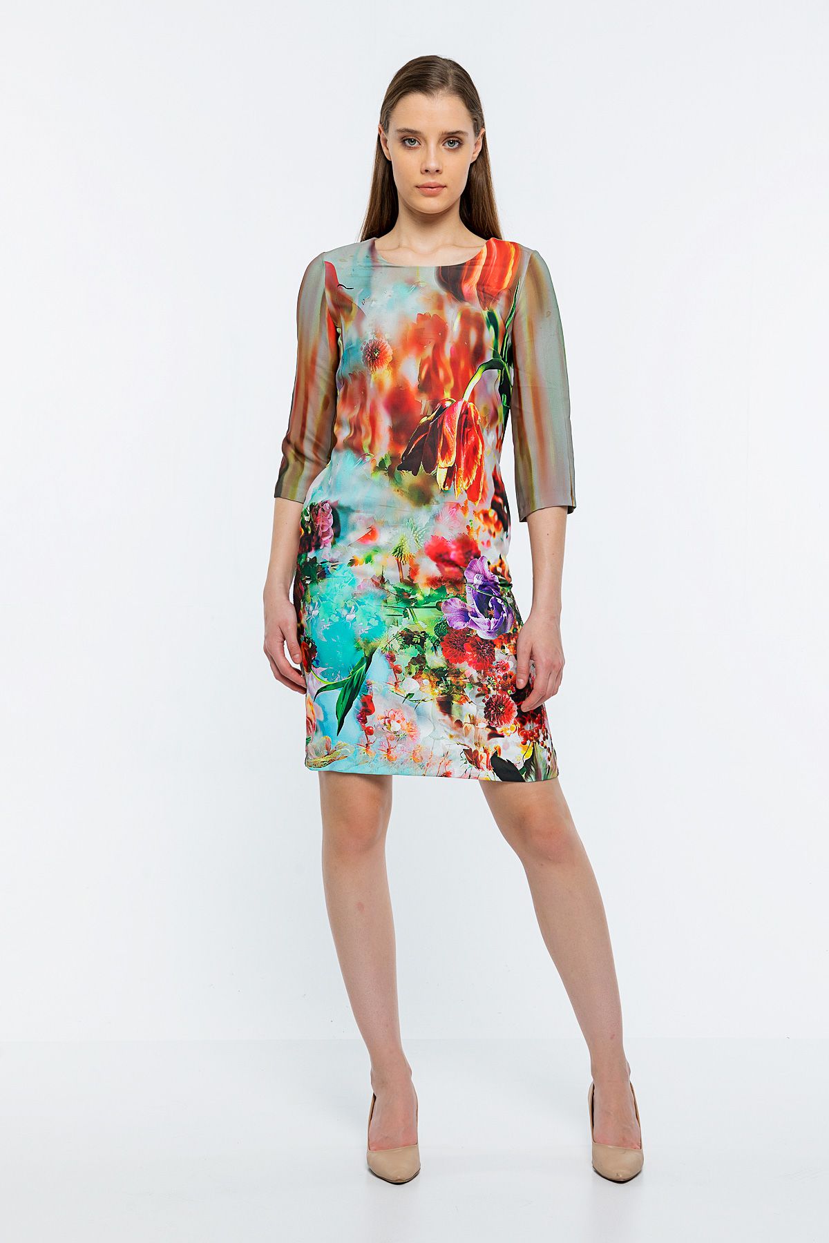 Kadın Haki V Yaka Desenli Elbise resmi İndirim -17%