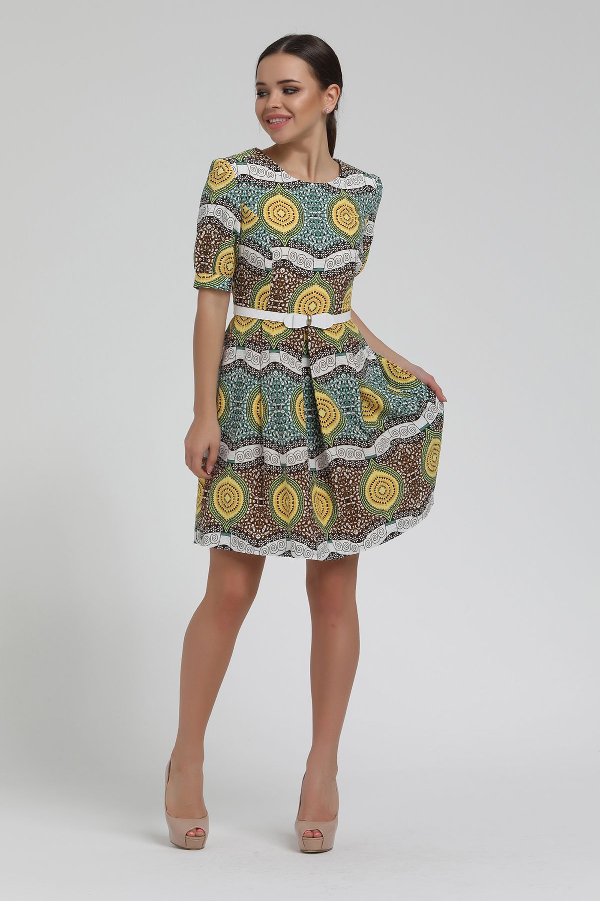 Kadın Yeşil Etnik Desenli Karpuz Kol Kısa Elbise